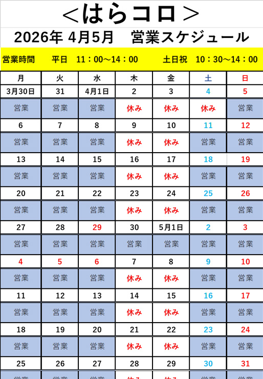 4月30日、5月1日は営業をいたしますが、お弁当販売はありません。